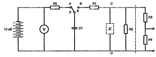 Соответствие требованию проверяют по МЭК 60707 или разделу G.1 приложения G для наименьшей используемой толщины, кроме категории огнестойкости FH от 3 до 40 мм/мин; в этом случае испытание проводят на испытательных образцах толщиной (3±0,2) мм. 20.2 Противопожарный кожух Дерево и МАТЕРИАЛЫ НА ДРЕВЕСНОЙ ОСНОВЕ толщиной не менее 6 мм рассматриваются как соответствующие требованиям огнестойкости категории FV1. Соответствие требованию проверяют по МЭК 60707 или разделу G.1 приложения G для самых малых толщин используемых материалов. Отверстия для соединяющих проводов должны быть целиком заполнены проводами. Соответствие требованию проверяют обследованием и измерением. 20.2.3 Если внутренние ПРОТИВОПОЖАРНЫЕ КОЖУХИ удовлетворяют требованиям 20.2.1 и 20.2.2, то к наружным кожухам аппаратуры или компонентов, или частей, примыкающих к внутреннему ПРОТИВОПОЖАРНОМУ КОЖУХУ, не применяют никаких требований. Изоляция внутренней проводки, соответствующая требованиям 20.1.2, рассматривается как внутренний ПРОТИВОПОЖАРНЫЙ КОЖУХ. Соответствие требованию проверяют обследованием. X - должен быть сделан разрыв Примечание - См. 4.3. Рисунок 1 - Схема испытательной цепи для условий неисправности На чертеже показан РАЗДЕЛИТЕЛЬНЫЙ ТРАНСФОРМАТОР Т, где точка а является ОПАСНОЙ ДЛЯ ЖИЗНИ относительно точки b. Если точка b находится внутри прибора, при проверке соответствия требованиям 8.6 принимают во внимание сумму расстояний х и у. Примечание - См. 8.6 Рисунок 2 - Пример оценки УСИЛЕННОЙ ИЗОЛЯЦИИ Точка А используется для определения доступности (см. 9.1.1) Точка В используется для измерений ВОЗДУШНЫХ ЗАЗОРОВ и ПУТЕЙ УТЕЧКИ (см. раздел 13). Примечание - См. 9.1.1 и 13.1.1. Рисунок 3 - Пример ДОСТУПНЫХ частей Примечание - См. 9.1.7 Рисунок 4 - Испытательный крюк Обозначения: С1=1 нФ; R1=1 кОм; R2=4 МОм; R3=100 МОм; R4=0,1 МОм; R5=15 МОм (Резистор R2 используется, когда испытания по 14.2 выполняются на компоненте, включающем только конденсатор). Выключатель S является критической частью цепи. Он должен быть сконструирован так, чтобы по возможности уменьшить потери энергии на искрение или в случае недостаточной изоляции. Пример такого выключателя приведен на рисунке 5b. Испытываемый компонент X подключается к клеммам С и D. Дополнительно в схему можно включить делитель напряжения на резисторах R3 и R4, чтобы с помощью подключенного параллельно резистору R4 осциллографа наблюдать формы напряжения на испытуемом компоненте. Этот делитель напряжения скорректирован так, чтобы наблюдаемая форма волны соответствовала форме волны через испытуемый компонент. Рисунок 5а - Испытательная цепь