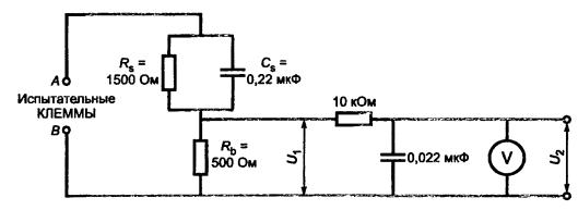 4.2.12 Аппарат, поставляемый изготовителем с дополнительными съемными ножками или подставками, испытывают с прикрепленными ножками или подставками или без них. Испытания аппаратуры в условиях неисправности предполагают, что кроме перечисленных в 4.2 нормальных условий работы должна поочередно имитироваться каждая из приведенных ниже неисправностей, а также неисправности, являющиеся логическим следствием предыдущих. Примечание 1 - Логическим следствием условий неисправности является то, что возникает при появлении неисправности. Цепи или части цепей, питаемые напряжением открытой цепи, не превышающим 35 В (пиковое значение) переменного или постоянного тока, и не вырабатывающие напряжения свыше этого значения, не считают представляющими опасность воспламенения, если ток, который может протекать от питающей цепи в течение более 2 мин при любой нагрузке, включая короткое замыкание, не превышает 0,2 А. Цепи с такими параметрами питания не подлежат испытаниям в условиях неисправности. Пример испытательной цепи для измерения напряжения и тока приведен на рисунке 1. Примечания 2 Обследование аппарата и всех его электрических схем, за исключением внутренней структуры интегральных микросхем, обычно обнаруживает условия неисправностей, которые могут порождать опасность и которые необходимо имитировать. Эти условия имитируются последовательно в наиболее удобном порядке. 3 При проведении обследования в соответствии с примечанием 2 необходимо принимать во внимание рабочие характеристики интегральных микросхем. 4 Если имеется вероятность влияния на результаты испытаний, то испытания в условиях неисправностей следует проводить в деревянном коробе, упомянутом в 4.1.4. При проведении испытаний введенная неисправность может вызвать последующую неисправность, такую как обрыв или короткое замыкание компонента. Для подтверждения постоянства полученных результатов имитация неисправности может быть повторена один или два раза с заменой компонентов. Если это не подтвердится, то необходимо имитировать самый неблагоприятный режим неисправности. 4.3.1 Короткое замыкание через ЗАЗОРЫ и ПУТИ УТЕЧКИ при значениях этих величин менее определяемых в разделе 13 для ОСНОВНОЙ и ДОПОЛНИТЕЛЬНОЙ ИЗОЛЯЦИИ. 4.3.2 Короткое замыкание через части из изоляционного материала; короткое замыкание, которое может привести к нарушению требований по защите от поражения электрическим током или перегреву, за исключением изолирующих деталей, которые удовлетворяют требованиям 10.3. Примечание - Этот подпункт не подразумевает короткого замыкания через изоляцию между витками обмотки. 4.3.3 Короткое замыкание или, если это возможно, обрыв: - нитей накала в электронных лампах; - изоляции между нитями накала и катодом электронных ламп; - промежутков между электродами в электронных лампах, исключая кинескопы; - полупроводниковых приборов, один вывод которых обрывается или любые два вывода соединяются между собой поочередно [см. также 4.3.4, перечисление г)]. Примечание - Если электронные лампы имеют конструкцию, в которой короткое замыкание между определенными электродами маловероятно или даже невозможно, такие электроды не должны быть замкнуты накоротко. Указанные в настоящем подпункте неисправности не распространяются на: а) резисторы, соответствующие требованиям 14.1 и