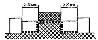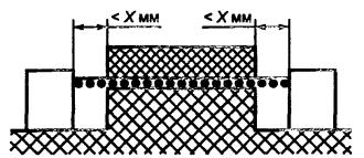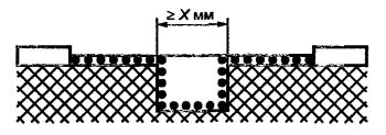Рисунок D.1 - Схема для измерения ТОКА ОТ ПРИКОСНОВЕНИЯ по МЭК 60990 Обозначение: V - вольтметр или осциллограф (среднеквадратическое или пиковое значение) с характеристиками: входное сопротивление ³ 1 МОм; входная емкость £ 200 пФ. Измерение переменного напряжения в частотном диапазоне от 15 Гц до 1 МГц и измерение постоянного напряжения. Примечания 1 Соответствующие измерения должны использоваться, чтобы получить правильное значение в случае несинусоидальной формы сигнала. Измерительный инструмент калибруется сравнением частоты напряжения U2 с линией на рисунке F.2 МЭК 60990 на различных частотах. Калибровочная кривая создана для того, чтобы показать отклонение напряжения U2 от идеальной кривой как функции частоты. Ток от прикосновения равен U2/500 (пиковое значение). 2 См. 9.1.1 настоящего стандарта. ПРИЛОЖЕНИЕ Е(обязательное) Измерение зазоров и путей утечекМетоды измерения ПУТЕЙ УТЕЧЕК и ЗАЗОРОВ, представленных на рисунках Е.1 – Е.10, применяют в соответствии с требованиями настоящего стандарта. Минимальное расстояние X=0,25 мм для условий по 13.3 и 1,0 мм - для условий по 13.2. Однако, если необходимая величина ЗАЗОРА и рассматриваемого здесь же ПУТИ УТЕЧКИ менее 3 мм, то величина Х принимается равной одной трети определенного зазора, но не менее 0,2 мм.