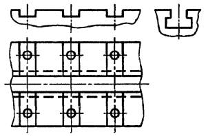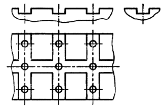 3 ПРАВИЛА КОНСТРУИРОВАНИЯ3.1 Геометрическая форма деталей и сборочных единиц СРПС должна соответствовать их функциональному назначению и обеспечивать достаточную жесткость. 3.2 Число конструктивных элементов, выполненных на поверхностях деталей, и их взаимное расположение должны обеспечивать универсальность деталей. 3.3 Размеры, поля допусков и их нанесение должны соответствовать функциональному назначению деталей и выбираться согласно требованиям настоящего стандарта. Технические требования - по ГОСТ 31.211.42. Основные размеры выбирают из ряда Ra 20, дополнительные - Ra 40. 3.4 Базирующие присоединительные элементы определяют в зависимости от выбранной при проектировании эксплуатационной характеристики деталей и сборочных единиц СРПС с учетом их применения: - для соединения элементов приспособлений (стендов); - для установки приспособлений (стендов) на опоры; - для установки агрегатных приводных устройств. 3.5 Основными конструктивными особенностями базовых поверхностей деталей и сборочных единиц СРПС являются: - с взаимно перпендикулярным расположением Т-образных пазов; - с взаимно перпендикулярным расположением Т-образных пазов и отверстиями на пересечении пазов; - с взаимно перпендикулярным расположением П-образных пазов и резьбовыми отверстиями на пересечении пазов; - с взаимно перпендикулярным расположением П-образных пазов и отверстиями на пересечении пазов; - с взаимно перпендикулярным расположением П-образных пазов и сеткой отверстий (рисунок 7); Рисунок 7 - с параллельным расположением Т-образных и П-образных пазов; - с взаимно перпендикулярным расположением Т-образных и П-образных пазов; - с взаимно перпендикулярным расположением поперечных П-образных пазов и центрального Т-образного паза и сеткой отверстий (рисунок 8); Рисунок 8 - с взаимно перпендикулярным расположением поперечных П-образных пазов и центрального Т-образного паза и сеткой резьбовых отверстий (рисунок 9). Рисунок 9 3.6 Рекомендуется в базовых и корпусных деталях выполнять "карманы" Р и ребра жесткости N (рисунок 10). Рисунок 10 3.7 Основные размеры, обеспечивающие точность расположения баз, следует указывать согласно рисунку 11, а. Допускается основные размеры указывать от общей базы согласно рисунку 11, б. Рисунок 11 3.8 Для опор и угольников высотой более 120 мм следует предусматривать крепление двумя-четырьмя болтами. 3.9 Рекомендуется в Т-образных пазах делать выемки для более удобного заведения в пазы крепежных болтов (рисунок 12). Рисунок 12 3.10 Номенклатура вновь разрабатываемых деталей и сборочных единиц, изготовляемых специализированным производством, должна быть включена в промышленный каталог. 4 ИЗМЕРЕНИЕ ГЕОМЕТРИЧЕСКИХ ПАРАМЕТРОВ4.2 Допускаемые погрешности при измерении линейных размеров - по ГОСТ 8.051. 4.3 Требования к нормальным условиям выполнения линейных измерений - по ГОСТ 8.050. 4.4 Методы контроля формы и расположения поверхностей деталей и сборочных единиц СРПС приведены в приложении А. Применяемые для контроля приспособления и инструмент приведены в приложении Б. ПРИЛОЖЕНИЕ А