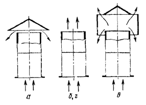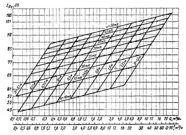 производительность ³ 5 - для вентиляторов со скоростью выхода воздуха менее 10 м/с; ³ 2 - для вентиляторов со скоростью выхода воздуха более 10 м/с (факельный выброс). 1.4. Акустические качества вентиляторов должны оцениваться по шумовым характеристикам (ГОСТ 12.2.028-84) на основании акустических испытаний вентиляторов в рабочем режиме раздельно на всасывании и нагнетании. При испытании на нагнетании должен учитываться шум, излучаемый через выходное отверстие и корпус вентилятора. 1.5. Суммарные уровни звуковой мощности вентиляторов не должны превышать значений, приведенных на черт. 1, более чем на 5 дБ. Черт. 1 1.4, 1.5. (Измененная редакция, Изм. № 1). 1.7. Номинальные значения диаметров рабочих колес по внешним кромкам лопаток должны выбираться из следующего ряда: 200, 250, 315, 400, 500, 630, 800, 1000, 1250, 1600 мм. (Измененная редакция, Изм. № 1). 1.8. Габаритные, присоединительные и установочные размеры вентиляторов - по техническим условиям на конкретные вентиляторы. 1.9. По конструктивным признакам вентиляторы подразделяют: в зависимости от направления и скорости воздуха: с выходом в стороны (черт. 2, а); вверх (черт. 2, б); вверх и вниз (черт. 2, в); факельный (черт. 2, г); в зависимости от взаимного расположения рабочего колеса и электродвигателя: с рабочим колесом, устанавливаемым после электродвигателя (черт. 3, а); с рабочим колесом, устанавливаемым перед электродвигателем (черт. 3, б); в зависимости от способа передачи динамических усилий на несущие конструкции: виброизолированные; невиброизолированные. Черт. 2 Черт. 3 1.10. Вентиляторы должны соответствовать схемам исполнения: К, К + СА или ВНА + К по ГОСТ 11442-74. 1.11. Рабочее колесо вентилятора должно устанавливаться непосредственно на вал электродвигателя. 1.12. (Исключен, Изм. № 1). 2. ТЕХНИЧЕСКИЕ ТРЕБОВАНИЯ2.1. Требования к конструкции 2.1.1. Вентиляторы должны изготовлять в соответствии с требованиями настоящего стандарта и технических условий на вентиляторы конкретных типов. 2.1.3. Конструкцией вентиляторов должно быть обеспечено постоянство зазора между корпусом и рабочим колесом, а также защита виброизолированной части от ветровых нагрузок. 2.1.4. Вентиляторы должны иметь специальные приспособления для захвата грузоподъемными средствами. 2.1.5. Для доступа к элементам, требующим периодического наблюдения и обслуживания, должны быть предусмотрены люки с легкосъемными крышками или другие подобные устройства. 2.1.6. Значение удельной остаточной неуравновешенности рабочих колес должно устанавливаться организацией - разработчиком конструкторской документации, исходя из допустимого среднего квадратического значения виброскорости и частоты вращения рабочего колеса. 2.2. Требования по устойчивости к внешним воздействиям 2.2.2. Наружные и внутренние поверхности вентиляторов должны иметь защитные лакокрасочные покрытия класса V по ГОСТ 9.032-74, группы VI по ГОСТ 9.104-79. Покрытию не подлежат посадочные поверхности, таблички, а также покупные изделия, имеющие окраску, и изделия из пластмассы. Значение вибрационной нагрузки и методы проверки вибрационной прочности должны быть заданы в технических условиях на вентиляторы конкретных типов. средний срок службы - не менее 12 лет; средний ресурс до капитального ремонта - не менее 23000 ч; наработка на отказ - не менее 15000 ч. Установленная безотказная наработка - не менее 3000 ч, установленный ресурс до