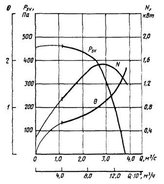 Срок действия с 01.01.83 до 01.01.95 Настоящий стандарт распространяется на крышные радиальные вентиляторы (далее - вентиляторы), одноступенчатые, с вертикально расположенной осью вращения, с диаметрами рабочих колес от 200 до 1600 мм, предназначенные для удаления из помещений промышленных и общественных зданий воздуха и других невзрывоопасных газовоздушных смесей, агрессивность которых по отношению к углеродистым сталям обыкновенного качества не выше агрессивности воздуха, а температура не выше 50 °С, которые не содержат липких веществ и волокнистых материалов, и в которых содержание пыли и других твердых примесей не более 100 мг/м3. Климатическое исполнение вентиляторов - У, Т, категория размещения - 1 по ГОСТ 15150-69. Стандарт не распространяется на вентиляторы в специальном исполнении (взрывозащищенные, коррозионностойкие и др.). Требования пп. 1.5, 2.1.7, 6.1.4, 6.3 и разд. 3 настоящего стандарта являются обязательными, другие требования - рекомендуемыми. (Измененная редакция, Изм. № 1). 1. ОСНОВНЫЕ ПАРАМЕТРЫ И РАЗМЕРЫ1.1. Производительность Q вентиляторов должна находиться в пределах от 0,3×103 до 80×103 м3/ч и статическое давление Psv - от 0 до 600 Па. Номинальный режим работы вентилятора должен соответствовать нулевому значению статического давления (psv = 0). При работе с сетью воздуховодов рекомендуется использовать участок