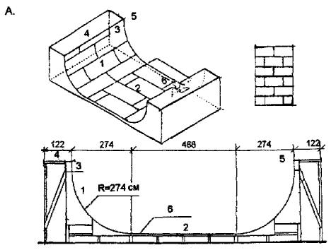 1. Труба диаметром 60 мм. 2. Опоры и распорки из четырехгранных труб. 3. Поверхность катания - дюралюминий 4 мм. 4. Приставная лестница. 5. Верхняя платформа. 6. Перила. Рис. 23. Оборудование для скейтинга и роллерспорта. Примеры решений рамп для выполнения трюков. А. Рампа в деревянных конструкциях. Б. Рампа в металлических конструкциях (Хабитспарк, Хависбек, ФРГ). Рис. 24. Оборудование для скейтинга и роллерспорта. Примеры решений рамп для выполнения трюков. Рампы со сложными профилями. А. С зонами разной высоты. Б. Изогнутая форма. В. Соединение двух рамп. Г. Соединение трех рамп. Рис. 25. Рекреационные сооружения. Сооружения для роллерспорта: скоростного бега, фигурного и массового катания на роликовых коньках, роллерхоккея. Экспликация помещений 1. Вестибюль, гардероб. 2. Раздевальные бассейна. 3. Душевые бассейна. 4. Открытый рекреационный бассейн. 5. Солярий. 6. Комната дежурного инструктора. 7. Комната дежурной медсестры. 8. Лаборатория. 9. Сауна. 10. Массажные. 11. Медпункт 12. Холл-комната отдыха. 13. Администрация. 14. Тренерская. 15. Бытовые помещения. 16. Хозяйственная кладовая. 17. Туалет. 18. Буфет. 19. Пункт проката спортинвентаря. 20. Технические помещения. Рис. 26. Функциональная схема открытого рекреационного бассейна Экспликация помещений 1. Вестибюль, гардероб. 2. Раздевальные, душевые залов. 3. Зал ОФП. 4. Зал хореографии 5. Тренажерный зал. 6. Инвентарная. 7. Раздевальные открытых плоскостных сооружений. 8. Холл-комната отдыха. 9. Медпункт. 10. Администрация. 11. Тренерская. 12. Бытовые, помещения. 13. Хозяйственная кладовая. 14. Туалет. 15. Буфет. 16. Пункт проката спортинвентаря. 17. Инвентарные и складские помещения открытых спортсооружений. 18. Технические помещения. Рис. 27. Функциональная схема здания (павильона) вспомогательных помещений открытых плоскостных сооружений физкультурно-рекреационного комплекса жилого района |