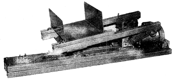 Рис. 1. Прибор для определения деформативности при колесной нагрузке. Образец фиксируют в приборе (рис. 1). Масса груза, установленного на тележке прибора составляет 56,7 кг. Включают прибор, и колесо совершает 1000 возвратно-поступательных движений. После этого образец извлекают из прибора и определяют среднее из трех измерений его ширины (b2). Значение показателя деформативности при колесной нагрузке вычисляют по формуле: