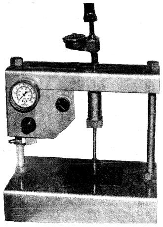 где S2 - площадь, подвергаемая истиранию, м2; ИТ - потери при истирании при времени насыщения Т. 2.2.5.3. В случае получения результатов, не отвечающих требованиям п. 5 табл. 2, производят коррекцию содержания битумной эмульсии и повторяют испытание. 2.2.6. Определение момента сопротивления. Момент сопротивления определяется с целью установления времени открытия движения. 2.2.6.1. Аппаратура. Весы по ГОСТ 24104-88 с погрешностью взвешивания не более 1 г. Металлический шпатель. Чашка вместимостью 500 см3. Металлическое кольцо с внутренним диаметром 70 мм и высотой 10 мм. Лист рубероида размером 100´100 мм. Прибор для определения момента сопротивления (рис. 3). Рис. 3 Прибор для определения момента сопротивления. 2.2.6.2. Проведение испытания. Образец изготавливаются путем заполнения смесью кольца, расположенного на листе рубероида. Поверхность смеси разравнивают линейкой за один проход. Смесь готовят в последовательности, описанной в п. 2.2.1.2. Для изготовления образца необходимо взять минеральный заполнитель в количестве 100 г, цемент или гашеную известь в количестве (в % от массы минерального заполнителя), определенном в п. 2.2.1, и воду в количестве (в % от массы минерального заполнителя), определенном в п. 2.2.2 (для смеси вида А) или в количестве 9 г (для смеси вида Б). Количество эмульсии (в % от массы минерального заполнителя), определенное в п. 2.2.5. Сняв кольцо, образцы на листе рубероида через заданный промежуток времени (п. 6 табл. 2) помещают в прибор (рис. 3). Индентор прибора прижимают к поверхности образца с давлением 2 МПа. Поворачивают динамометрический рычаг на угол 90° и фиксируют момент, прикладываемый для смещения индентора относительно образца. Полученное значение момента сопротивления должно соответствовать п. 6 табл. 2. 3. ПРАВИЛА ПРИЕМКИ3.1. Качество уложенной смеси контролируется специализированной лабораторией. 3.2. Коррекцию состава осуществляют при поступлении новой партии любого из исходных материалов, но не реже 1 раза в месяц. Кроме того, коррекция состава должна осуществляться при выявлении каких-либо отклонений при контроле качества в процессе строительства. 3.3. При производстве работ по устройству слоя износа из эмульсионно-минеральных смесей с применением специализированной укладочной машины выполняются следующие виды текущего контроля: - визуально определяется однородность материала и сплошность укладываемого слоя, интенсивность формирования уложенного слоя; - время до открытия движения, оцениваемое моментом сопротивления в соответствии с п. 6 табл. 2. 3.4. Периодически проводится контроль: - шероховатости или коэффициента сцепления по ВСН 38-90; - определение наличия сцепления между слоем износа с нижележащим слоем при отборе кернов (вырубок) в соответствии со СНиП 3.06.03-85. 3.5. Потребитель имеет право проводить контрольную проверку качества смеси, применяя для этой цели методы испытаний, предусмотренные настоящими техническими условиями. 4. ТРАНСПОРТИРОВАНИЕ И ХРАНЕНИЕ4.1. Смеси транспортированию и хранению не подлежат. 4.2. После приготовления смеси должны быть уложены в соответствии с технологическим регламентом. 5. ГАРАНТИИ ПОСТАВЩИКА5.1. Поставщик (изготовитель) гарантирует соответствие смеси требованиям настоящих технических условий. 6. ТЕХНИКА БЕЗОПАСНОСТИ И ПРОИЗВОДСТВЕННАЯ САНИТАРИЯ6.1. При приготовлении смесей и их укладке следует со
