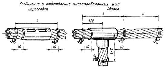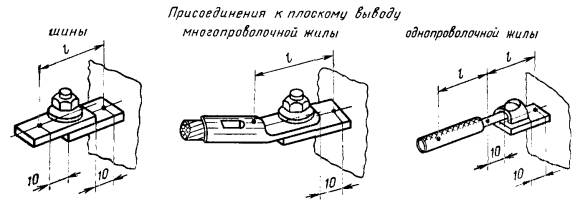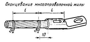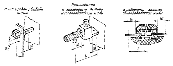 Примечание. При испытании соединении в составе изделия число образцов определяется числом испытываемых изделий и их конструкцией. 2. МЕТОДЫ ИСПЫТАНИЙ2.1. Общие положения 2.1.1. Подготовка соединений к испытаниям должна включать: отбор готовых изделий, блоков или отдельных соединений; сборку соединений или их макетов по установленной технологии. 2.1.2. Монтаж разборных соединений рекомендуется проводить за 1-4 сут до начала исследовательских испытаний. В течение этого времени у соединений многопроволочных жил проводов и кабелей, неоконцованных наконечниками, с гнездовыми выводами и зажимами допускается двухкратное подтягивание винтов (болтов). (Измененная редакция, изм. №1). 2.1.3. Подготовка рабочих поверхностей контакт-деталей должна выполняться в соответствии с ГОСТ 10434-82. 2.1.4. В разборных соединениях должны использоваться крепежные детали, указанные в ГОСТ 10434-82. Болты рекомендуется затягивать моментными индикаторными ключами, винты - тарированными отвертками; крутящие моменты рекомендуется принимать в соответствии с ГОСТ 10434-82. 2.1.5. Подготовленные к испытаниям соединения должны иметь четкую, нестирающуюся при испытаниях, маркировку (номер контактного соединения). При отсутствии таких указаний рекомендуется длину соединительных проводников выбирать в соответствии с требованиями п. 2.1.7; номинальное сечение - из расчета протекания испытательного тока: для шин - по «Правилам устройства электроустановок» утвержденным Госэнергонадзором, для проводов и кабелей - по табл. 2. Изоляцию проводов и кабелей следует удалить по всей длине проводника. Таблица 2