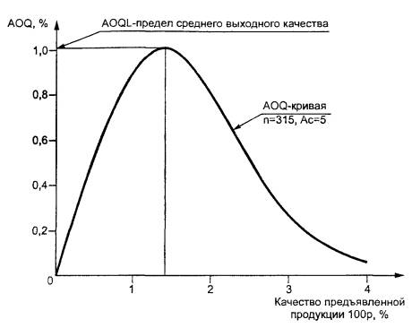 Примечания: 1 Значения AOQL можно получить с помощью более сложных вычислений на основе гипергеометрического распределения. Для приведенного примера реальное значение AOQL равно 5,809%. 2 Для случая примера 40, если бы проводился контроль несоответствий на 100 единиц продукции вместо контроля процента несоответствующих единиц, то AOQL был бы равен