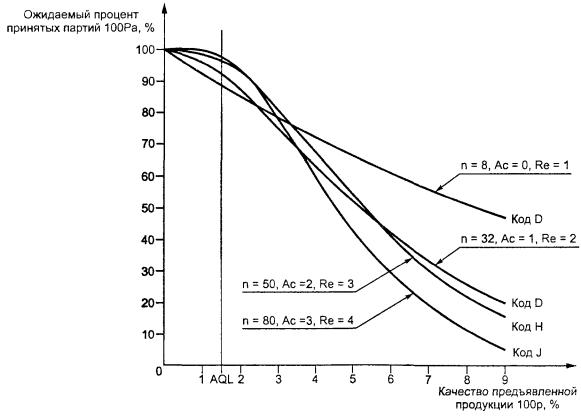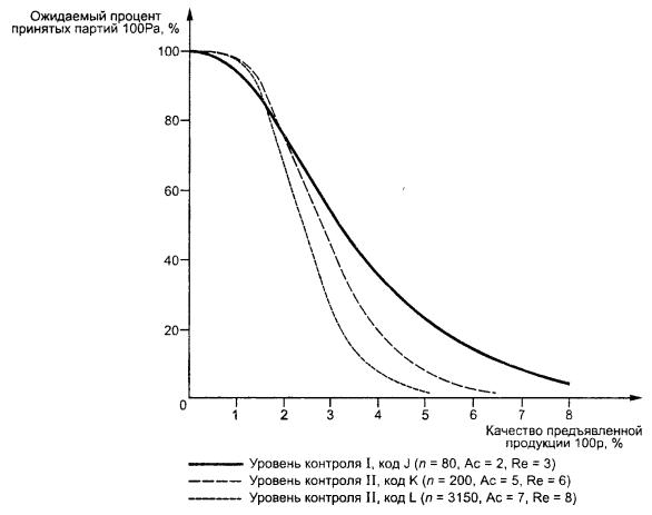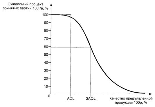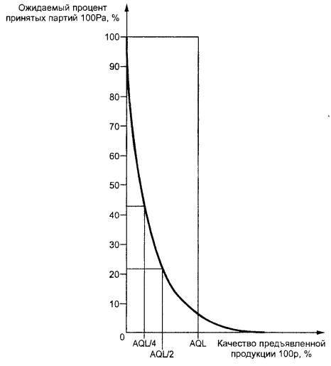 Примечание: Рекомендуется рассматривать данную таблицу исключительно для демонстрации. Перечисленные объемы партий таковы, что все большие объемы отвечают требуемому условию. В большинстве случаев некоторые меньшие объемы партий также им отвечают, но в каждом случае объем партии на одно изделие меньше, чем тот, при котором эти условия не выполняются. Специальные уровни контроля разработаны для ситуаций, когда объемы выборки должны быть малыми. Их не следует назначать до тщательной проверки последствий с точки зрения рисков выборочного контроля с помощью изучения кривой оперативной характеристики. В ГОСТ Р 50779.71 установлено: «При назначении уровня контроля с S-1 по S-4 требуется осторожность, чтобы исключить применение значений AQL, несовместимых с этими уровнями контроля» [10.1]. Практически основная цель специальных уровней контроля - представить малые объемы выборки там, где это действительно необходимо. Например, коды объема выборки для S-1 не идут далее D, что эквивалентно одноступенчатой выборке из 8 изделий. Однако нет смысла устанавливать уровень S-1 в надежде на объем выборки 8 единиц или ниже, если AQL равен 0,10, чему соответствует минимальный объем выборки 125 единиц. Объем информации о качестве процесса, полученный по результатам проверки выборок, зависит от абсолютного объема выборок, а не от единиц, контролируемых из партии. Объем выборки устанавливают в зависимости от объема партии по трем причинам: а) при больших ставках принять правильное решение более важно. Правильное использование таблиц ведет к результату, когда партии, изготовленные при хорошем процессе, получают больше шансов быть принятыми по мере увеличения объема партий, в то время как партии, изготовленные при плохом процессе, в противоположность этому получают большую вероятность отклонения; б) в большой партии можно позволить объем выборки, который был бы неэкономичен для малой партии. Например, объем выборки 80 из партии 1000 можно легко обосновать с экономической точки зрения, а выборка 80 из партии 100 будет относительно дорогостоящей вследствие того, что контролируется большая часть партии; в) правильный случайный отбор выборки (по 2.25) более затруднителен, если объем выборки составляет малую долю объема партии. 3.6 Установление уровня контроля При применении ГОСТ Р 50779.71 в ситуациях, для которых он планировался (длинная последовательность партий), необходимо до применения таблиц установить значения AQL и уровень контроля. Во многих случаях это необходимо сделать даже до постановки продукции на производство. Установив AQL как качество, требуемое для среднего уровня процесса (п. 2.7), уровень контроля [10.1] рекомендуется назначать с учетом того, какому уровню качества должна соответствовать большая вероятность отклонения, если контролируется случайная партия такого качества. После этого выбирают уровень контроля, что даст оперативную характеристику, требуемую для этих целей, когда объем партии не выходит за обычно планируемые границы. Если заданы AQL и LQ, можно найти оперативную характеристику из таблиц (таблица X), удовлетворяющую этим двум требованиям, и, следовательно, получить необходимый код объема выборки. Потом можно найти уровень контроля (таблица I), который дает код объема выборки для интервала объемов партий, содержащего объем партии, планируемой 