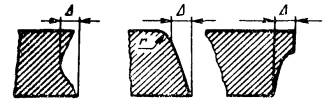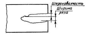 Примечание. Радиус оплавления r верхней кромки не должен превышать 2 мм. 7. Шероховатость поверхности реза (черт. 2) следует определять измерением высоты неровностей профиля Rz по 10 точкам на базовой длине 8 мм. Черт. 2 При этом шероховатость поверхности реза измеряют для толщин разрезаемого металла до 60 мм в середине толщины, свыше 60 мм - в двух местах, отступая от верхней и нижней кромок на 10 мм. Классы вырезаемых деталей и заготовок в зависимости от шероховатости поверхности реза и наибольшие значения высоты неровностей профиля Rz должны соответствовать указанным в табл. 3. Таблица 3