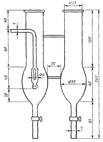 где Ссо - массовая доля серы в стандартном образце, %; m - масса навески стандартного образца, г; V - объем раствора йодноватокислого калия или йода, израсходованный на титрование раствора стандартного образца, см3; V1 - объем раствора йодноватокислого калия или йода, израсходованный на титрование раствора контрольной пробы, см3. Плавни: олово по ГОСТ 860-75 или медь по ГОСТ 546-79 в виде стружки, а также оксиды этих металлов, предварительно проверенные в условиях анализа на содержание серы. Допускается применять другие плавни. Все плавни должны быть проверены на содержание серы, которое не должно превышать величины допускаемых расхождений для соответствующего значения массовой доли серы, приведенных в табл. 1. Марганец диоксид по ГОСТ 4470-79, Эфир этиловый по ГОСТ 22300-76. Спирт этиловый ректификованный технический по ГОСТ 18300-87. Ацетон по ГОСТ 2603-79. (Измененная редакция, Изм. № 1). 2.3. Подготовка к анализу Перед началом работы нагревают печь до требуемой температуры и проверяют установку на герметичность. Полноту выжигания серы из фарфоровой трубки и лодочки определяют следующим образом: при достижении в печи температуры 1250-1350 °С трубку закрывают с обеих сторон пробками, наливают в оба сосуда по 110-120 см3 крахмального раствора слабо-голубой окраски, открыв кран, пропускают ток кислорода со скоростью 2,5 дм3/мин. Обесцвечивание раствора в поглотительном сосуде при пропускании кислорода в течение нескольких минут свидетельствует о выделении из трубки восстановительных газообразных веществ, реагирующих с йодом. Не прекращая подачи кислорода, приливают к поглотительному раствору стандартный раствор йода или смеси йодноватокислого и йодистого калия до тех пор, пока интенсивность окраски растворов в обоих сосудах не станет одинаковой. Для проверки правильности работы установки сжигают 2-3 навески стандартного образца стали или чугуна в присутствии плавня, как указано в п. 2.4. Затем сжигают навеску плавня для установления поправки контрольного опыта. Перед началом работы, а также после замены фарфоровых трубок, сжигают две-три произвольных навески металла. Навеску стали (чугуна) при необходимости, предварительно промытую эфиром, этиловым спиртом или ацетоном и высушенную массой 0,5-1,0 г помещают в лодочку, равномерно распределяя по дну и покрывая слоем плавня в количестве 0,5-1,0 г. При анализе углеродистых сталей допускается проводить сжигание без плавня. Лодочку с пробой и плавнем при помощи крючка помещают в наиболее нагретую часть фарфоровой трубки и быстро закрывают трубку резиновой пробкой или затвором, в которые вставлена стеклянная или латунная трубка для подвода кислорода. Сжигают навеску пробы при температуре 1250-1350 °С. Скорость пропускания кислорода составляет 2,5 дм3/мин. (Измененная редакция, Изм. № 1). В процессе горения навески наблюдают за изменением окраски жидкости в поглотительном сосуде, где происходит поглощение оксидов серы. Во время сжигания окраска раствора в поглотительном сосуде должна быть все время близкой к окраске раствора сравнения. Для этого к раствору в поглотительном сосуде по мере уменьшения интенсивности окраски добавляют раствор йодид-йодата калия или йода до получения одинаковой интенсивности окраски в обоих сосудах. Титрование считают законченным, когда интенсивность окраски растворов в обоих сосудах ст