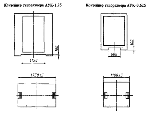 Постановлением Государственного комитета стандартов Совета Министров СССР от 10 ноября 1976 г. № 2517 дата введения установлена с 01.01.78 Ограничение срока действия снято по протоколу № 2-92 Межгосударственного Совета по стандартизации, метрологии и сертификации (ИУС 2-93) Настоящий стандарт распространяется на универсальные автомобильные контейнеры типоразмеров АУК-1,25 и АУК-0,625 по ГОСТ 18477-79. (Измененная редакция, Изм. № 2). 1. ТЕХНИЧЕСКИЕ ТРЕБОВАНИЯ1.1. Металлические элементы конструкции контейнеров (основание, крыша, дверной каркас с дверными створками, боковая и торцевые стенки) должны изготовляться из низкоуглеродистых сталей по ГОСТ 380-94 или низколегированных по ГОСТ 19281-89. (Измененная редакция, Изм. № 1). 1.2. Материалы, применяемые для уплотнения, грунтовки и окраски контейнеров должны быть нетоксичными, влагонепроницаемыми, обладать стойкостью против действия моющих, обеззараживающих и дегазирующих средств. Материалы, применяемые для изготовления контейнеров, эксплуатируемых в районах Крайнего Севера, должны соответствовать требованиям НД. 1.2а. Контейнеры, предназначенные для эксплуатации в макроклиматических районах с холодным климатом, должны изготовляться в исполнении ХЛ по ГОСТ 15150-69. (Введен дополнительно, Изм. № 2). 1.3. Рымы должны изготавливаться из стали марки 20 по ГОСТ 1050-88, размеры прутка - по ГОСТ 2590-88. Допускается рымы изготавливать из других марок стали, не уступающих по прочности стали марки 20. 1.4. Типы и конструктивные элементы сварных соединений контейнеров должны соответствовать требованиям ГОСТ 5264-80, ГОСТ 14771-76 и ГОСТ 8713-79. 1.5. Конструкция контейнеров должна обеспечивать: удобство и безопасность выполнения операций по загрузке и разгрузке; удобство и безопасность выполнения перегрузочных операций с помощью кранового оборудования и вилочных погрузчиков; быструю и удобную промывку, а также очистку наружных и внутренних поверхностей контейнеров; невозможность проникновения во внутрь атмосферных осадков; возможность двухъярусного штабелирования; ремонтопригодность (после сборки отдельных элементов конструкции доступ к ним с целью ремонта не должен быть затруднен при складировании). 1.6. Контейнеры должны быть оборудованы: двустворчатой дверью с запорным устройством и резиновым уплотнением, или без резинового уплотнения, но с лабиринтами для отвода атмосферных осадков. Двери должны быть расположены у контейнеров типоразмера АУК-1,25 на стороне с размером 1800 мм, а у контейнеров типоразмера АУК-0,625 на стороне с размером 1150 мм; рымными узлами; карманом для хранения транспортных документов, расположенным на внутренней стороне одной из створок дверей в верхней части; проемами в нижней части контейнеров, предназначенными для ввода вил погрузчика. Примечания: 1. Контейнеры типоразмера АУК-0,625 допускается изготавливать на колесах с механизмом установки контейнера на опоры без проемов для ввода вил погрузчика габаритной высотой не более 1900 мм; 2. Внутренняя и внешняя поверхности контейнеров должны выполняться без выступающих частей (за исключением коробок рымных узлов и карманов для хранения транспортной документации и гофров боковых стен - во внутреннюю поверхность контейнера). 1.5, 1.6. (Измененная редакция, Изм. № 1). (Измененная редакция, Изм. № 2). 1.8. Конструкция двери и дверной рамы должна обеспечивать: открывание к