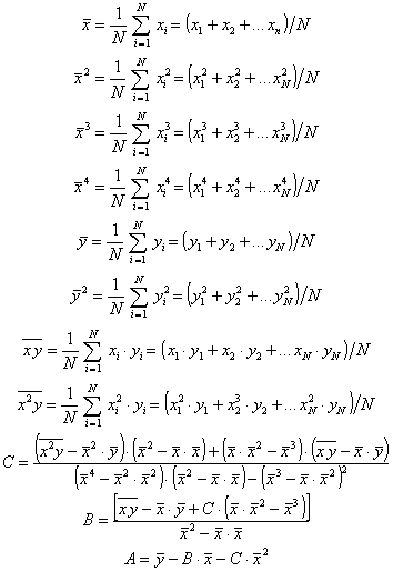 где: E(IRI) - оценка ровности участка по IRI, м/км; Р - количество просветов под трехметровой рейкой, превышающих величину 3 мм. Эта величина выражается в процентах от общего количества просветов, полученных при измерении трехметровой рейкой на выбранном участке. В графическом виде эта зависимость представлена в приложении 2. Получение эталонных оценок участков, используемых для калибровки с помощью трехметровой рейки, менее трудоемкий процесс, чем их нивелирование с коротким шагом и дальнейшая обработка по специальной программе. В этом случае уравнение калибровки будет иметь следующий вид: где: Е(Р) - оценка ровности участка по методу трехметровой рейки, %; Т - оценка ровности того же участка с помощью калибруемой установки, осуществляющей метод толчкомера, см/км. 5. Выбор эталонных участков и получение их оценок5.1. Количество участков калибровки N следует принимать равным 6 - 7. При меньшем количестве участков будет возрастать погрешность калибровки. Весь предполагаемый контролируемый диапазон шкалы ровности при измерении толчкомером необходимо разбить на N поддиапазонов и выбрать участки для калибровки с параметрами ровности, соответствующими этим поддиапазонам. Характеристики ровности выбранных участков должны примерно соответствовать арифметической прогрессии (равномерно распределены по предполагаемому диапазону измерения). Участки должны располагаться на прямолинейных отрезках автомобильных дорог и иметь свойства ровности, которые являются общими для всей длины участка, включая пятидесятиметровый подход к калибровочному участку. Длина участков должна быть не менее 400 м каждый. 5.2. Для каждого участка от 1 до N необходимо получить оценку ровности по толчкомеру Т и выбранному эталонному показателю ровности: количеству просветов под трехметровой рейкой или IRI. 6. Расчет калибровочной кривой6.1. Формулы для вычисления уравнения калибровки (1) (определения коэффициентов А, В, С) приведены ниже: