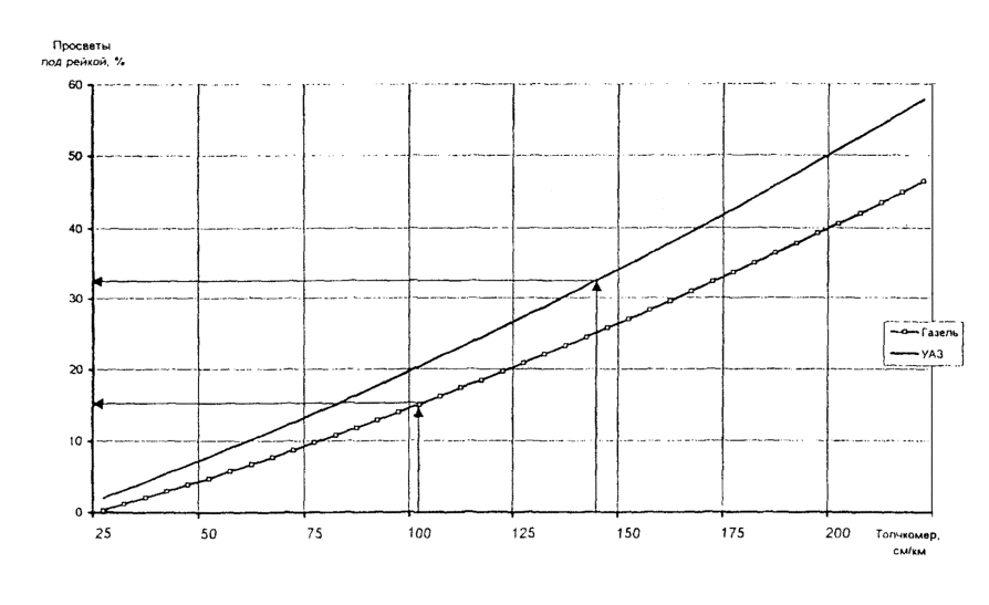 Рис. 2. Калибровочные зависимости рейка - толчкомер. ПРИЛОЖЕНИЕ 4IRI - толчкомер, УАЗ, Газель