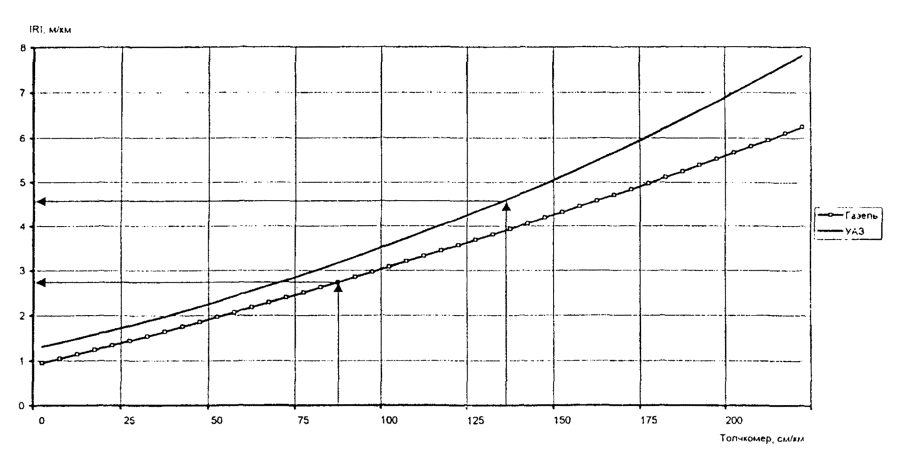 Рис. 3. Калибровочные зависимости IRI - толчкомер. |