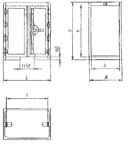 Примечание. Применение контейнера УУК-5 с угловыми фитингами допускается только при наличии согласия транспортных министерств, участвующих в их перевозках. Среднетоннажные контейнеры УУК-5У, УУКП-3(5), УУК-3(5) и УУК-3 Черт. 4 Среднетоннажные контейнеры УУК-5У, УУКП-3(5), УУК-3(5) и УУК-3 Черт. 5 Черт. 4 и 5. (Измененная редакция, Изм. № 1, 3). Малотоннажные контейнеры АУК-1,25 и АУК-0,625 Черт. 6 (Измененная редакция, Изм. № 3). 2.3. При наличии у контейнеров типоразмеров УУК-5У, УУКП-3(5), УУК-3(5) и УУК-3 боковой двери (черт. 4) вместо торцовой ширина и высота дверного проема должны быть равны внутренним длине и высоте этих контейнеров. Если такое равенство обеспечить невозможно, то ширина бокового дверного проема у контейнеров всех указанных типоразмеров должны быть не менее 1950 мм, а высота - не менее 2090 мм у контейнеров типоразмеров УУК-5У, УУК-3(5), УУК-3 и не менее 2280 мм - у контейнера типоразмера УУКП-3(5). Размеры бокового дверного проема контейнеров типоразмеров УУКП-5(6), УУКП-5, УУК-5(6) и УУК-5 устанавливаются транспортными министерствами. (Новая редакция, Изм. № 3). 2.4. Размеры угловых, фитингом и их расположение на крупнотоннажных контейнерах - по ГОСТ 20527-82. 2.5. Размеры и расположение рымных узлов закрытых среднетоннажных контейнеров - по ГОСТ 18579-79 и приведенным на черт. 2-5, открытых среднетоннажных - по утвержденной конструкторской документации, автомобильных малотоннажных - по ГОСТ 22225-76. (Новая редакция, Изм. № 3). 2.6. При оборудовании угловыми фитингами контейнеров типоразмера УУК-5 их расположение должно соответствовать указанному на черт. 3. Разница между расстояниями, замеренными между центрами отверстий диагонально противоположных угловых фитингов, не должна превышать 5 мм. 2.7. Размеры и размещение закрытых снизу вилочных проемов у контейнеров типоразмеров 1CC, 1C, 1СХ, 1D и 1 DX с торцевыми дверями должны соответствовать указанным на черт. 7 и в табл. 4. При наличии у контейнеров типоразмеров 1CC, 1C и 1СХ второй пары вилочных проемов расстояние между их вертикальными осями должно соответствовать указанному на черт. 7 и в табл. 4. Ширина и высота открытых снизу вилочных проемов и расстояние между их вертикальными осями у среднетоннажных контейнеров должны быть одинаковыми у контейнеров всех типоразмеров и соответственно составлять 300, 100 и 950 мм. Примечания: 1. Вторая внутренняя пара вилочных проемов у контейнеров типоразмеров 1CC, 1C и 1СХ предназначена для использования только при подъеме порожних контейнеров. 2. Крупнотоннажные контейнеры с боковыми дверями вилочными проемами не оборудуются. (Измененная редакция, Изм. № 3).