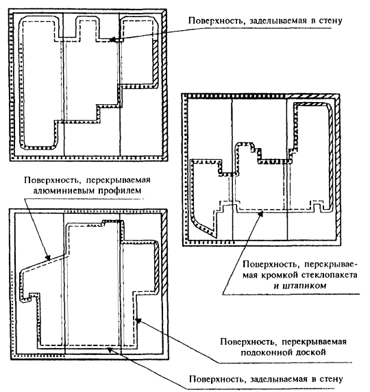 Рисунок 7 - Примеры определения видов поверхностей заготовок и деталей для оконных блоков по ГОСТ 24700