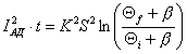 2. Допустимый ток короткого замыканияДопустимый ток короткого замыкания определяют по формуле I = e×IАД, где I - допустимый ток короткого замыкания, А; IАД - ток короткого замыкания, вычисленный на основе адиабатического нагрева; e - коэффициент, учитывающий отвод тепла в соседние элементы (см. пп. 5 и 6). Для адиабатических расчетов e = 1. 3. Расчет адиабатического тока короткого замыканияФормула адиабатического процесса нагрева при любой исходной температуре имеет следующий общий вид: