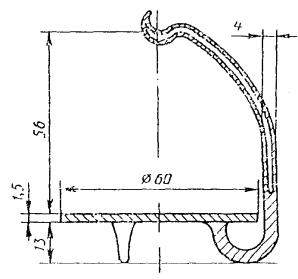 где m - масса непластифицированной дисперсии, кг; X1 - массовая доля сухого остатка в дисперсии, %; Х2 - массовая доля пластификатора в пересчете на сухой остаток, %. (Измененная редакция, Изм. № 4). ПРИЛОЖЕНИЕ 4Рекомендуемое Определение сухого остатка при температуре 105 °СМС ИСО 1626-77 Пластмассы. Водные дисперсии полимеров и сополимеров. Определение сухого остатка при температуре 105 °С 1. Цель и область применения Настоящий стандарт устанавливает методику определения сухого остатка водных дисперсий при температуре 105 °С. Методика подходит для всех водных полимеров и сополимеров дисперсии, химически стабильных при температуре испытания и не содержащих другие летучие вещества, например, органические растворители. Остаток непластифицированных водных полимерных и сополимерных дисперсий в основном состоит из полимера и сополимера и небольшого количества добавок-эмульгаторов, защитных коллоидов и др. Сухой остаток пластифицированных дисперсий содержит в себе пластификатор. В условиях температуры и времени, установленных настоящим стандартом, в продукте не должно происходить никакой термической деградации, в противном случае следует использовать другие условия и точно указать их в отчете. 2. Принцип Сушка в печи при температуре 105 °С в течение 1 ч испытуемого количества дисперсии, распределенной по поверхности в виде тонкого равномерного слоя, с последующим взвешиванием сухого остатка. 3. Аппарат 3.1. Аппарат для распределения и выпаривания Очень важно равномерно распределить пленку толщиной 0,15 мм по поверхности, для чего можно использовать один из перечисленных ниже приборов. 3.1.1 Аппарат А (черт. 1, 2, 3). Состоит из двух стеклянных тарелок диаметром 60 мм; одна из которых снабжена держателем для другой. Внутренние круговые поверхности тарелок должны быть совершенно плоские и гладкие. Куски алюминиевой фольги толщиной 0,1 мм прямоугольной формы размером 60´120 мм. Примечание. Аппараты, описанные в пп. 3.1.1 и 3.1.2, рекомендуются для очень вязких дисперсий, потому что они способны размазывать пленку автоматически. Металлическая или стеклянная тарелка диаметром 70 мм с краем (минимальная высота 3 мм). Примечание. Аппарат рекомендуется для очень жидких дисперсий, так как не допускает перелива. 3.2. Печь с естественной воздушной вентиляцией и контролируемой температурой (105±2) °С. 3.3. Сушилка, состоящая из подходящего осушителя, например, хлорида кальция или силикагеля. 3.4. Весы с точностью до 0,0001 г. 4. Ход определения 4.1. Использование аппарата А 4.1.1. Устройство (п. 3.1.1) (см. черт 3) помещают в печь (п. 3.2) с контролируемой температурой (105+2) °С. Через ~30 мин охлаждают в сушилке (п. 3.3) в течение ~30 мин и взвешивают с точностью до 0,0001 г. 4.1.2. С помощью стеклянной палочки или маленькой лопаточки наливают (1+0,2) г дисперсии в центр нижней тарелки. Для удобства верхнюю тарелку снимают. Верхнюю тарелку кладут на нижнюю, слегка прижав ее. Дисперсия, зажатая между тарелками, распределяется равномерно. Диаметр тарелок такой, что если в центр нижней тарелки налито указанное выше количество дисперсии, то перелива можно избежать. Если дисперсия очень жидкая, проверяют, нет ли перелива. Взвешивают все с точностью до 0,001 г. 4.1.3. Разделяют тарелки и подвешивают верхнюю на упор. Вес устройство помещают в печь при контролируемой температуре (105±2) °С на (60+5) мин. 4.1.4. Устройство вынимают