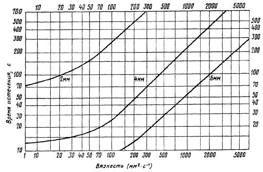 Примечание. Допускается измерять вискозиметром с диаметром сопла 4 мм время истечения от 12 до 200 с при разбавлении материала до рабочей вязкости. (Измененная редакция, Изм. № 2). ПРИЛОЖЕНИЕ 2Справочное Зависимость времени истечения (с) от вязкости (мм2/с) лакокрасочного материала в вискозиметрах с различным диаметром сопла