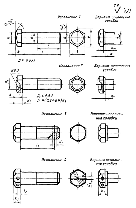 потребителем изготавливать болты исполнения 1 с высотой головки, равной k1.