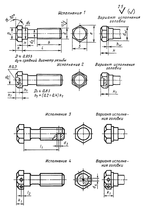 потребителем изготавливать болты исполнения 1 с высотой головки, равной k1.
