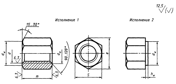 Дата введения 01.01.72 в части размера «под ключ» S = 13 мм 01.01.73 1. Настоящий стандарт распространяется на шестигранные высокие гайки класса точности В с диаметром резьбы от 3 до 48 мм. Стандарт полностью соответствует СТ СЭВ 5636-86. (Измененная редакция, Изм. № 4, 6). 2. Конструкция и размеры гаек должны соответствовать указанным на чертеже и в таблице. (Измененная редакция, Изм. № 2 - 8). (Измененная редакция, Изм. № 2, 4). 3а. Не установленные настоящим стандартом допуски размеров, отклонений формы и расположения поверхностей и методы контроля - по ГОСТ 1759.1. 3б. Допустимые дефекты поверхности гаек и методы контроля - по ГОСТ 1759.3. 3а, 3б. (Введены дополнительно, Изм. № 5). 4. (Исключен, Изм. № 5). 5. Технические требования - по ГОСТ 1759.0. 6. (Исключен, Изм. № 2). 7. Масса гаек указана в приложении 1. 8. (Исключен, Изм. № 4).