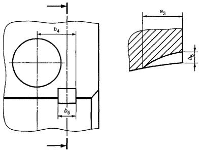 Примечания 1 b1 ≥ 1,5s3, но не менее 3 мм. 2 Если b3 < 2 мм, то эта поверхность может быть свободна от подшипникового (антифрикционного) металла в пределах кольцевой длины а2, чтобы избежать разрушения подшипникового металла, когда отверстие вкладыша подвергают механической обработке. Фиксирующий выступ может также разрушиться в смазочной канавке Рисунок 6 - Фиксирующий выступ в тонкостенном буртовом вкладыше
