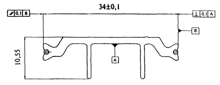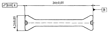5.2.3 Рекомендуемые предельные отклонения ширины полки профиля не должны превышать ± 0,05 мм. Допускается по согласованию с заказчиком для профилей, используемых в технологии производства комбинированного профиля способом запенивания без зальцовки, устанавливать другие предельные отклонения ширины полки профиля, но не превышающие ± 0,15 мм. 5.2.4 Рекомендуемые предельные отклонения номинального размера толщины сечения профиля не должны превышать ± 0,05 мм. 5.2.5 Отклонение от параллельности поверхностей профиля не должно быть более 0,1 мм (рисунки 3 и 4). Рисунок 3 Рисунок 4 5.2.6 Острые кромки профилей должны быть, как правило, слегка закруглены. Рекомендуемая величина радиуса закругления острых кромок профилей, если она не указана на чертеже, должна быть не более 0,3 мм. 5.2.7 Профили изготавливают длиной от 3500 до 7000 мм. Допускается по согласованию с потребителем, установленному в договоре на поставку, изготовление профилей другой длины. Допускаемые отклонения длины профиля не должны превышать: от 0 до + 15 мм - при длине до 6000 мм включ.; от 0 до + 20 мм - » св. 6000 до 7000 мм ». 5.2.8 Профили должны быть отрезаны под прямым углом. 5.3 Основные показатели и характеристики 5.3.1 Показатели физико-механических свойств профилей должны соответствовать указанным в таблице 2. Таблица 2