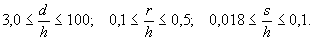 геометрических параметров d/h, r/h и s/h. Промежуточные значения коэффициентов