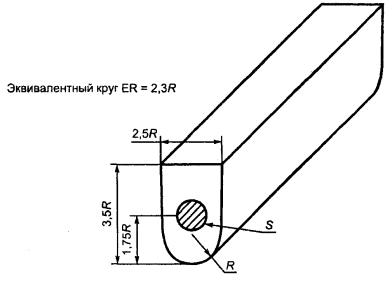 4.2.3.1.3 В случае, если импортное оборудование применяется при температуре ниже минус 20 °С, должны быть установлены дополнительные требования по показателю ударной вязкости согласно приложению В, пункт В.2. 4.2.4 Показатели механических характеристик материалов рекомендуется выбирать согласно ГОСТ 19281, ГОСТ 21357, [6] и [7] для климатических исполнений оборудования по ГОСТ 15150, в соответствии с климатическим районированием на территории России и стран СНГ по ГОСТ 16350. Дополнительно рекомендуется применять эквивалентные нормативные документы на материалы, приведенные в 4.2. 4.2.5 Свойства по толщине Там, где конструкция требует установления свойств в зависимости от толщины материалов, должно проводиться испытание согласно ГОСТ 28870 или [5], если уменьшение толщины превышает 25 %. 4.2.6 Оценка материала Механические испытания следует выполнять на оценочных образцах, представляющих партию, используемую при изготовлении детали, из материала той же самой плавки и термообработки. Испытания должны проводиться в соответствии с требованиями ГОСТ 1497, ГОСТ 9012, ГОСТ 9013, ГОСТ 9454, ГОСТ 9651, ГОСТ 10145, ГОСТ 14019 или [5] с использованием материала в окончательно термообработанном состоянии. Для испытаний по оценке материала снятие напряжений, сопровождающих сварку, термообработкой не считается. Оценочные испытания материала могут быть проведены до снятия напряжений при условии, что температура снятия напряжений ниже той, при которой происходит изменение состояния термообработки. Размер оценочного вырезанного образца детали следует определять по методу эквивалентного круга ER. На рисунке 1 приведены базовые модели для определения ER для простых сплошных и полых деталей. Некоторые из представленных форм могут быть использованы для оценочных испытательных вырезанных образцов. Рисунок 2 показывает ступени для определения главного ER для некоторых сложных частей. ER детали следует определять с использованием фактических размеров этой детали, какими они будут в термообработанном состоянии. ER для оценочного вырезанного образца должен быть равен или больше размеров эквивалентного круга той детали, которую он определяет, но не более 127 мм. Рисунок 3 иллюстрирует методику определения требуемых размеров килевой балки. Оценочные вырезанные образцы могут являться частью тех компонентов, которые они представляют, или отдельными от данных компонентов, а также изъятой из технологического цикла производственной деталью. Однако во всех случаях вырезанные образцы должны быть той же самой плавки, что и те детали, которые они оценивают, подвергнуты тем же самым обрабатывающим операциям и должны термообрабатываться вместе с этими деталями.
