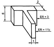 Примечания: 1. Значение диагонали (на изображении в) может быть измерено вместо расчета при расположении значений ER на пересечении под прямым утлом друг к другу. 2. Рекомендуется использовать при определении главного эквивалентного круга для сложных профилей следующую последовательность: - приведите компоненты к простым профилям; - превратите простые профили в значения ER. Значение ER при пересечении эквивалентно диагонали или диаметру окружности, которая может быть описана вокруг области пересечения, перпендикулярно к большему профилю ER (на изображении в); - наибольшее значение ER как для простого компонента, так и для пересечения, должно быть принято в качестве ER для сложного профиля. Рисунок 2 - ER для сложных форм