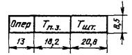 Черт. 4 Примечания: 1. Информация, вносимая в графы 24 и 25, в строки со служебными символами М не записывается. 2. Допускается не заполнять графы блока (черт. 4) в КТИ единичных и групповых процессов (операций) раскроя материала. В этом случае в соответствующих графах МК указывают значения Тп. з. и Тшт. 1.8. Эскизы раскроя материала допускается выполнять на нижней зоне поля КТИ (формы 1, 2, 3а, 7, 7а) без применения карты эскизов. В этом случае нижней зоне поля КТИ, занятой изображением, должен быть присвоен служебный символ 0. Пример разработки КТИ с изображением эскиза приведен в приложении 2. 1.8.1. Допускается в нижней зоне поля КТИ помещать следующую информацию: - о применяемости деталей в изделии (изделиях); - данные об использовании отходов от других деталей на раскраиваемую деталь, указания по использованию отходов и т.п. 1.9. Размеры граф форм КТИ и ВДО должны соответствовать максимальному количеству знаков, которые можно напечатать в графах; размеры и количество знаков указаны в табл. 3. Таблица 3