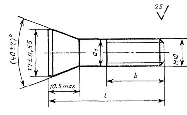 Постановлением Государственного комитета СССР по стандартам от 15 января 1981 г. № 3 срок введения установлен с 01.01.82 Проверен в 1986 г. Постановлением Госстандарта СССР от 23.06.86 № 1642 срок действия продлен до 01.01.97 Несоблюдение стандарта преследуется по закону 1. Настоящий стандарт распространяется на болты шинные класса точности С с номинальным диаметром резьбы 10 мм. (Измененная редакция, Изм. № 1). 2. Конструкция и размеры болтов должны соответствовать указанным на чертеже и в таблице. Таблица 1 мм