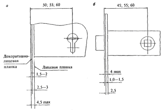 Рисунок В.6 - Пример замка врезного цилиндрового (типов ЗВ4 и ЗВ7) и сувальдного (тип ЗВ9)