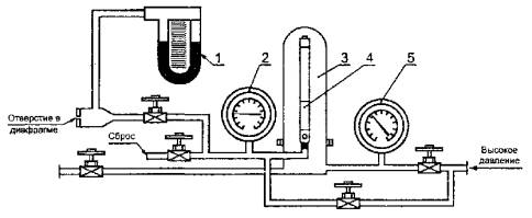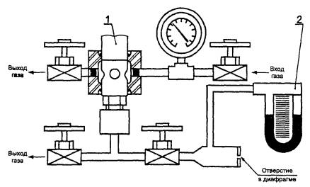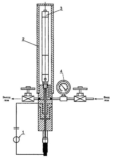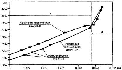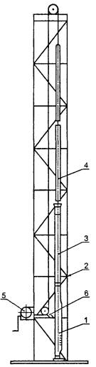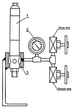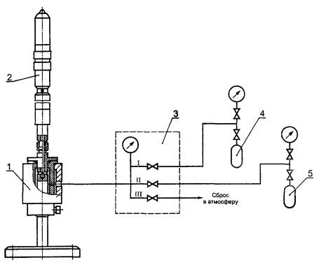 где Р1 и Р2 крайние значения усредненной линии участка А диаграммы; dx - максимально эффективное перемещение штока клапана в пределах наклонной линии участка А. 5.4.3.4 Испытание клапана на работоспособность 5.4.3.4.1 Испытание проводят на стенде (рисунок 13), при этом утяжеленная штанга должна быть длиной (1500 ± 80) мм и номинальным диаметром 38,1 мм; стержень механического ясса должен быть длиной (500 ± 50) мм и номинальным диаметром 38,1 мм. Рисунок 13 - Стенд для испытания установки клапана 5.4.3.4.2 Скважинную камеру устанавливают в аппарат для измерения открывающего клапан давления. Посадку клапана в карман скважинной камеры осуществляют при помощи пяти ударов яссом со свободно падающим утяжеленным стержнем. Спускной инструмент освобождают движением ясса вверх. Измеряют открывающее давление клапана, вставленного в карман скважинной камеры. Измеряют и регистрируют температуру окружающей среды. Результаты испытаний регистрируют в протоколе по форме 2 (приложение А). 5.4.4.4.3 Результаты испытаний оформляют актом, в котором указывают обозначение и заводской номер клапана, дату, результаты испытания с указанием: - давления установки клапана; - давления опрессовки; - диаграмм перемещения штока в зависимости от давления на клапан; - наилучшей наклонной линии участка А диаграммы; - нормы нагрузки сильфонной сборки; - максимально эффективного перемещения клапана. ПРИЛОЖЕНИЕ А(справочное) Форма 1 Форма протокола испытаний