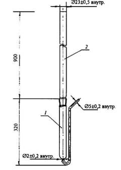 1 - реакционный сосуд; 2 - воздушный холодильник. Рисунок 1 - Прибор для определения антикоррозионных свойств турбинных масел Пластинки стали марки Ст3 по ГОСТ 380 размером (70±0,2×12±0,1×2±0,1) мм. Термостат жидкостной типа ЛПСМ с электрообогревом, обеспечивающий нагрев до 150 °С и автоматическое поддержание температуры на заданном уровне с погрешностью ±0,5 °С. Высота термостата должна обеспечивать возможность погружения в теплоноситель реакционного сосуда на 2/3 его высоты *. _____________ * Возможно использование другого оборудования аналогичного назначения с характеристиками не хуже указанных в перечне. Термометры ртутные стеклянные лабораторные с пределами измерений от 50 °С до 150 °С типа ТЛ-4 № 4 или ТЛ-5 № 3 по ГОСТ 13646. Термометры электроконтактные с диапазоном измерений температур контактирования (0÷50) °С по ГОСТ 9871. Расходомерное устройство (реометры) с градуировкой, обеспечивающей расход кислорода в количестве 30 см3/мин на каждый прибор с погрешностью не более 10% *. _____________ * Возможно использование другого оборудования аналогичного назначения с характеристиками не хуже указанных в перечне. Весы аналитические 2-го класса точности с пределом взвешивания до 200 г с точностью до 0,0002 г. Весы технические с пределом взвешивания 500 г *. _____________ * Возможно использование другого оборудования аналогичного назначения с характеристиками не хуже указанных в перечне. Механический шлифовальный станок любой конструкции с частотой вращения вала 1500-1700 мин-1. Кислород газообразный технический по ГОСТ 5583. Бензин-растворитель экстракционный по ТУ 38.401-67-108. Спирт этиловый ректификованный технический по ГОСТ 18300. Толуол ч.д.а. или х.ч. по ГОСТ 14710 или смесь спирто-толуольная в соотношении 2:3. Кислота серная ч.д.а. или х.ч. по ГОСТ 4204. Кислота соляная ч.д.а. или х.ч. по ГОСТ 3118. Метиловый оранжевый (индикатор) по ГОСТ 10816, 1%-ный водный раствор. Вода дистиллированная по ГОСТ 6709. Смесь хромовая для мытья посуды. Жидкость для термостата: кремнеорганическая жидкость ПФМС-4 по ГОСТ 15866, ПМС-60 по ГОСТ 13032 или нефтяные масла с температурой вспышки в открытом тигле выше 250 °С с добавлением 1% стабилизирующей присадки. Бумага фильтровальная лабораторная по ГОСТ 12026. Шкурки шлифовальные на тканевой основе по ГОСТ 5009 или шкурки шлифовальные на бумажной основе по ГОСТ 6456 с зернистостью порошка 40÷50 мкм. 2 ПОДГОТОВКА К ИСПЫТАНИЮ2.1 Каждый новый прибор перед испытанием должен быть вымыт хромовой смесью, а затем водой до нейтральной реакции по метилоранжу. Вслед за этим приборы подвергают "тренировке", для чего в сухие, чистые сосуды наливают по 30 г турбинного масла с кислотным числом не менее 0,07 мг КОН/г, опускают стальные пластинки и помещают в термостат с температурой 95 °С, подсоединяют резиновые трубки, подающие кислород, воздушные холодильники и выдерживают в бане 24 ч (можно с перерывами) при расходе кислорода 30 см3/мин. Через 30 мин после начала опыта в каждый прибор добавляют по 3 см3 дистиллированной воды, осторожно приподнимая холодильник. Погружение реакционных сосудов в термостат осуществляют с тем расчетом, чтобы после добавления воды и с учетом пропускания кислорода через реакционную смесь уровень жидкости в них был ниже уровня жидкости в термостате на 50-70 мм. По окончании "тренировки" приборы вынимают из термостата и моют по пп.2.2-2.8 настоящей методики. По этой же методике приборы мою