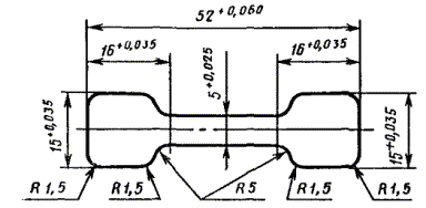 где m - масса навески до сушки, г; m1 - масса навески после сушки, г. При возникших разногласиях массовую долю влаги определяют по ГОСТ 11736-78. За результат испытания принимают среднее арифметическое результатов двух параллельных определений, абсолютное значение допускаемого расхождения между которыми не должно превышать 0,005 % при доверительной вероятности P = 0,95. 4.7. Определение плотности Плотность определяют по ГОСТ 15139-69 гидростатическим взвешиванием двух дисков из фторопласта-4, изготовленных по п. 4.2.4. Перед испытанием у выпеченных дисков лезвием бритвы или ножа обрезают края по окружности для того, чтобы избежать недопрессованных и непроплавленных участков. После этого в диске прокалывают отверстие размером около 1 мм, через которое протягивают капроновую нить и завязывают ее петлей. Испытание проводят при температуре дистиллированной воды (ГОСТ 6709-72) (23,0 ± 0,5) °С. Воду предварительно кипятят и охлаждают до указанной температуры. Для лучшего смачивания поверхности диска в воду добавляют 2 - 3 капли поверхностно-активного вещества ОП-7 по ГОСТ 8433-81 или неонол ЛФ 9-10 и АФ 9-12 по нормативно-технической документации. За результат испытания принимают среднее арифметическое двух параллельных определений, допускаемое расхождение между которыми не должно превышать 0,005 г/см3 при доверительной вероятности P = 0,95. Массу капроновой нити и смачивающего вещества при расчете плотности не учитывают. (Измененная редакция, Изм. № 2). 4.8. Определение прочности при разрыве и относительного удлинения при разрыве незакаленного образца. Прочность при разрыве и относительное