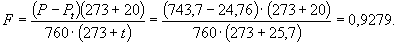 где ta - показание термометра, соответствующее температуре по истечении 2 мин главного периода в делениях шкалы термометра; t1 - показание термометра, соответствующее начальной температуре главного периода (она же конечная температура начального периода) в делениях шкалы термометра; t2 - показание термометра, соответствующее конечной температуре главного периода в делениях шкалы термометра. 4.1.5. Коэффициент (F) вычисляют по формуле