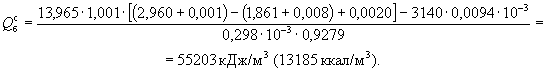 где Qсв - высшая удельная теплота сгорания сухого природного или попутного газа, кДж/м3 (ккал/м3); Рп - парциальное давление водяных паров в газе при 20 °С и давлении 101,325 кПа, вычисляют по формуле Рп = 135,33·Wm, где Wm - влажность газа при 20 °С и 101,325 кПа, кг/м3, вычисляют по формуле