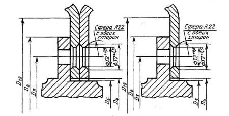 Примечание: Диаметр привалочной плоскости D18 определяют из условия D18≥ D6+5 мм.