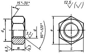 Постановлением Государственного комитета стандартов Совета Министров СССР от 12 сентября 1972 г. № 1709 дата введения установлена 01.01.74 Ограничение срока действия снято по протоколу № 5-94 Межгосударственного совета по стандартизации, метрологии и сертификации (ИУС 11-12-94) Издание 2006 г. с Изменениями № 1, 2, утвержденными в июне 1980 г., декабре 1986 г. (ИУС 9-80, 4-87). 1. Настоящий стандарт распространяется на шестигранные гайки общего назначения с уменьшенным размером «под ключ» класса точности А с диаметром резьбы свыше 48 мм. (Измененная редакция, Изм. № 2). 2. Конструкция и размеры гаек должны соответствовать указанным на чертеже и в таблице.