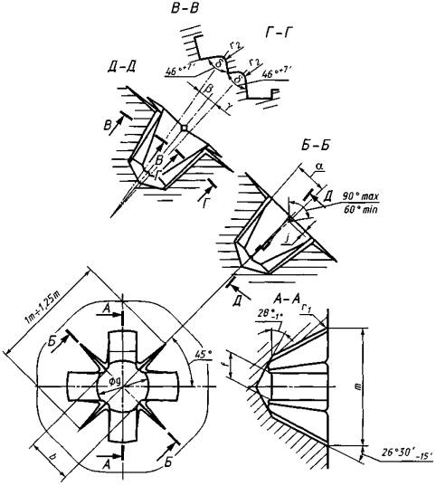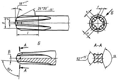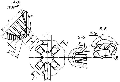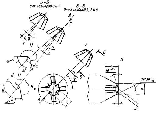 Примечание. Для калибра с номером 0 вместо угла а должно быть скругление радиусом r = (0,25 ± 0,025) мм. 2.3. Размеры конца калибра для контроля крестообразного шлица типа Z должны соответствовать указанным на черт. 5 и в табл. 4.