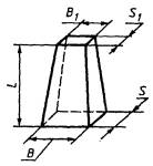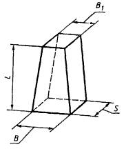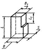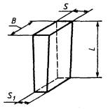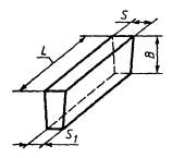 2 Форма и размеры2.1. Форма и размеры изделий должны соответствовать требованиям, указанным на рисунках 1 - 7, в таблицах 2 - 8 и приложениях 1, 2, 3. 2.2. Расчетные объем и масса изделий приведены в приложении 4. 2.3. Изделия, приведенные на рисунках 1, 2, 4 - 6, кроме изделий длиной 230 мм, изготовляются с отверстиями для штырей по рисункам 8 - 11. Размеры, не указанные на рисунках 9 - 11, должны соответствовать данным рисунка 8. Рабочей поверхностью изделий с номерами 9 - 46 считается поверхность по торцевой грани S1В (рисунок 2), S1L (рисунок 3), SB (рисунки 4, 5). Нормы для показателей внешнего вида, приведенные в таблице 10 для изделий, форма которых не позволяет определить рабочую поверхность, относятся только к одной из поверхностей. Рабочая поверхность изделий, изготовляемых по рисункам, согласованным между изготовителем и потребителем, должна быть указана на рисунках. 2.4. Для установки усиленной металлической подвески в изделиях со штыревыми отверстиями изготовляются углубления по рисункам 12 - 15. Размеры, не указанные на рисунках 13 - 15, должны соответствовать данным рисунка 12. 2.5. Размеры, определяющие расположение штыревых отверстий (рисунки 8 - 15), а также радиусы закруглений (рисунки 8, 12) и размер (5 ± 2) мм (рисунки 12, 15) подлежат контролю только при изготовлении пресс-формы. 2.6. Размеры h, k, α (рисунок 7 и таблица 8) не подлежат контролю и даны только для использования при изготовлении пресс-формы. 2.7. Предельные отклонения по размерам изделий должны соответствовать размерам, указанным в таблице 9. Рисунок 1 - Кирпич прямой