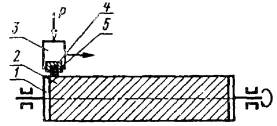 Постановлением Комитета стандартов, мер и измерительных приборов при Совете Министров СССР от 02.01.69 № 44 срок введения установлен с 01.07.69 Ограничение срока действия снято по решению Межгосударственного Совета по стандартизации, метрологии и сертификации (ИУС 2-93). Настоящий стандарт распространяется на пластмассы и устанавливает метод испытания пластмасс на истирание (износ) шлифовальной шкуркой. Стандарт не распространяется на газонаполненные, ячеистые пластмассы, а также на пленки и покрытия, имеющие толщину менее 2 мм. Сущность метода заключается в определении уменьшения объема образца в результате истирания. Показатель истирания предназначен для сравнительной оценки износа пластмасс при абразивном истирании без смазки. (Измененная редакция, Изм. № 1). 1. АППАРАТУРА И МАТЕРИАЛЫ1.1. Для испытания пластмасс на абразивный износ применяют испытательную машину, схема которой приведена на черт. 1. Черт. 1 Испытательная машина состоит из следующих частей: вращающегося цилиндра 1 диаметром 150-170 мм, предназначенного для крепления на нем шлифовальной шкурки 2 (ГОСТ 344-85). Окружная скорость поверхности цилиндра должна составлять 0,30±0,05 м/с; длина цилиндра должна быть такой, чтобы путь истирания по винтовой линии был не менее 15 м; патрона 3 для съемного держателя 4 с закрепленным в нем образцом 5; нагружающего устройства, обеспечивающего приложение регулируемой нагрузки (p) от 9,81 до 49,05 Н (от 1 до 5 кгс) перпендикулярно истирающей поверхности; механизма, обеспечивающего равномерное перемещение патрона вдоль образующей цилиндра на расстояние 10+1 мм за время одного оборота цилиндра; съемных держателей двух типов для жесткого крепления в них образцов круглого или прямоугольного сечения (черт. 2);
