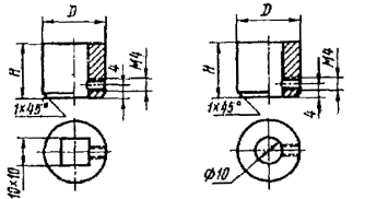 D и H согласовать с конструкцией машины. Черт. 2 устройств, обеспечивающих плотное закрепление шлифовальной шкурки на боковой поверхности цилиндра (без вздутий и перекосов), - разъемных колец (по краям приклеенной шкурки), продольной планки и т.д. (Измененная редакция, Изм № 1). 1.2. При креплении шлифовальной шкурки к цилиндру жесткой планкой, расположенной по его образующей, машина должна иметь специальное устройство, поднимающее патрон при подходе образца к планке и опускающее его без удара после прохождения планки. 1.3. Рекомендуется предусматривать в машине устройство, поднимающее образец либо отключающее прибор после прохождение образцом заданного числа оборотов. (Измененная редакция, Изм. № 1). 1.4. Шлифовальная шкурка по ГОСТ 344-85 и пп. 3.1-3.3 настоящего стандарта. Для испытания применяют шкурку в рулоне. 1.5. Эталоны из металлического цинка марки ЦВ по ГОСТ 3640-79. Эталон служит для оценки истирающей способности шкурки. Он должен иметь форму и размеры, одинаковые с образцами. Величина нужной твердости достигается термообработкой заготовки. (Измененная редакция, Изм. № 1). 2. ПОДГОТОВКА К ИСПЫТАНИЮ2.1. В качестве образцов пластмассы для испытания используют: брусок квадратного сечения (10,0±0,4)×(10,0±0,4) мм, высотой 10-20 мм: цилиндр диаметром 10±0,4 мм, высотой 10-20 мм, составной образец в виде бруска или цилиндра тех же размеров, состоящий из слоя испытуемой пластмассы толщиной не менее 2 мм, прикрепленной к основанию из другого твердого материала. Крепление испытуемого слоя к основанию осуществляют склеиванием или механическим способом. При этом клей не должен изменять свойства испытуемой пластмассы, а истирание не должно затрагивать слой клея. При механическом креплении не допускается наличие прикрепляющих деталей на части образца, выступающей из держателя и подвергаемой истиранию. (Измененная редакция, Изм. № 1). 2.2. Форма испытуемого образца и режим его изготовления должны быть оговорены в стандартах и технических условиях на пластмассу. 2.3. На истираемой поверхности образца не должно быть раковин, сколов, пор, заусенцев, вздутий и других дефектов, видимых невооруженным глазом. 2.4. Количество образцов, взятых от одной партии пластмассы или вырезанных из одного эталона, должно быть не менее трех. 3. ПРОВЕДЕНИЕ ИСПЫТАНИЯ3.1. Перед испытанием образцов истирающую способность каждого рулона шкурки определяют нахождением для него фактической величины показателя истирания эталонов. За величину показателя истирания рулона шкурки берут среднее арифметическое значение показателей истирания эталона, определенных на трех кусках шкурки, вырезанных в начале, середине и конце рулона. 3.2. Шкурка с истирающей способностью, которая обеспечивает величину показателя истирания эталона в 1,20±0,02 мм3/м, определяемую настоящим методом испытания, условно называется эталонной. Для эталонной шкурки коэффициент пересчета K = 1 (п. 3.7). 3.3. Шкурка, которая не отвечает вышеуказанным требованиям, условно называется неэталонной. Она может быть использована для испытания только после определения для нее коэффициента пересчета K (п. 3.7). 3.4. За показатель истирания эталона принимают величину уменьшения объема его в кубических миллиметрах на 1 м пути истирания. Показатель истирания эталона (Viэ) в мм3/м вычисляют по формуле