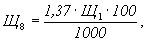 где 0,50 - отношение эквивалента окиси кальция к эквиваленту гидроокиси калия. А.1.4.3. Общее щелочное число Щ3 вычисляют по 11.3.3. А.1.4.4. Щелочное число, обусловленное наличием углекислого кальция, Щ6, в миллиграммах КОН на 1 г присадки, вычисляют по формуле Щ6 = Щ3 - Щ4. А.1.4.5. Пересчет щелочного числа Щ6 массовую долю окиси кальция Щ7 в процентах производят по формуле