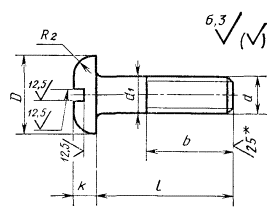 Постановлением Государственного комитета стандартов Совета Министров СССР от 12 сентября 1975 г. № 2397 срок введения установлен с 01.01.77 Проверен в 1981 г. Пост. Госстандарта от 29.12.81 № 5742 срок действия продлен до 01.01.92 Несоблюдение стандарта преследуется по закону 1. Настоящий стандарт распространяется на винты с цилиндрической скругленной головкой классов точности А и В с номинальным диаметром резьбы от 2 до 10 мм. Стандарт полностью соответствует СТ СЭВ 2654-80. 2. Конструкция и размеры винтов должны соответствовать указанным в табл. 1, 2 и на чертеже. мм