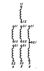 Черт. 11 Маркировка линейного регулировочного трансформатора с возбуждающей обмоткой, соединенной в треугольник Черт. 12 Допускается опускать буквы и цифры. Соседние группы цифр, имеющие различное смысловое значение, следует разделять точкой. Например, вместо обозначения 1 U 11 допускается сокращенная запись - 1.11. Следует следить за тем, чтобы между двумя подобными обозначениями не было смешения. 2 Концы обмоток фазы Два конца обмоток фазы, подводимые к линейному или нейтральному выводам, следует маркировать соответственно цифрами 1 и 2. Если обмотки фазы на концах имеют ответвления, предназначенные для присоединения к устройствам ПБВ или РПН, которые ведут к линейному или нейтральному выводам, то эти выводы следует маркировать соответственно цифрами 1 или 2. При такой системе маркировки выводов и ответвлений на чертежах схем обмоток предполагается одинаковое направление намотки для всех обмоток. Полярность концов 1 и 2 всех обмоток одного стержня также всегда одинаковая. Примечание. Маркировка автотрансформаторов с двумя обмотками фазы, имеющими общий конец - по п. 4. 3 Линейный и нейтральный выводы Линейные выводы обмотки трехфазного силового трансформатора следует обозначать буквами U, V, W, которые помещают перед цифрами, приведенными в п. 2. Если необходимо, допускается помещать эти буквы также перед цифрами, приведенными в п. п. 5 и 6. Нейтраль обмотки, соединенной в звезду или зигзагом, следует обозначать буквой N. 4 Обозначение обмоток Различные обмотки трансформатора следует обозначать цифрами, которые помещают перед буквами, приведенными в п. 3. Обмотку высшего напряжения следует обозначать цифрой 1, а другие обмотки - цифрами 2, 3, 4... в нисходящем порядке номинальных напряжений. Для автотрансформаторов, у которых две обмотки имеют общий конец, этот конец следует маркировать цифрой 2 (пример приведен на черт. 6, в). Примечание. Если несколько обмоток имеют одинаковое номинальное напряжение, применение соответствующего им цифрового обозначения следует согласовать между изготовителем и потребителем. 5 Последовательно-параллельное соединение Если обмотки фазы состоят из нескольких частей, которые могут быть соединены последовательно или параллельно, концы этих частей следует обозначать цифрами 1, 2, 3, 4... при этом линейные или нейтральные концы обмоток фазы маркируют цифрами 1 и 2 в соответствии с требованиями п. 2. 6 Маркировка ответвлений Ответвления, подводимые к устройствам РПН или ПБВ, следует обозначать группой цифр, расположенными в возрастающем порядке. Значения этих цифр должны быть больше применяемых для обозначения линейного и нейтрального выводов и для обозначения концов частей обмоток фазы, соединенных последовательно или параллельно. Нумерация должна начинаться с ближайшего к концу, промаркированному цифрой 1, ответвления. Маркировка обмоток с переключаемыми ответвлениями должна основываться на таком соединении, которое дает наибольшее эффективное число витков для обмотки, присоединенной к устройству ПБВ или РПН. Обмотки автотрансформаторов с ответвлениями, расположенными между последовательной и общей обмотками или на конце последовательной обмотки, а также обмотки, один конец которых подключен к соединению между последовательной и общей обмотками (черт. 7в), следует нумеровать как последовательную о