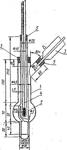 1- колба; 2- насадка; 3-холодильник; 4-термометр; 5-пробка 4.3.3. Обработка результатов Температуру кипения эталонного изооктана (X) в °С при 101,32 кПа (760 мм рт. ст.) вычисляют по формуле (1), если давление измеряется в кПа, или (2), если давление измеряется в мм рт. ст.;