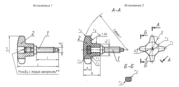 размеры нажимных винтов с звездообразной рукояткой должны соответствовать черт.